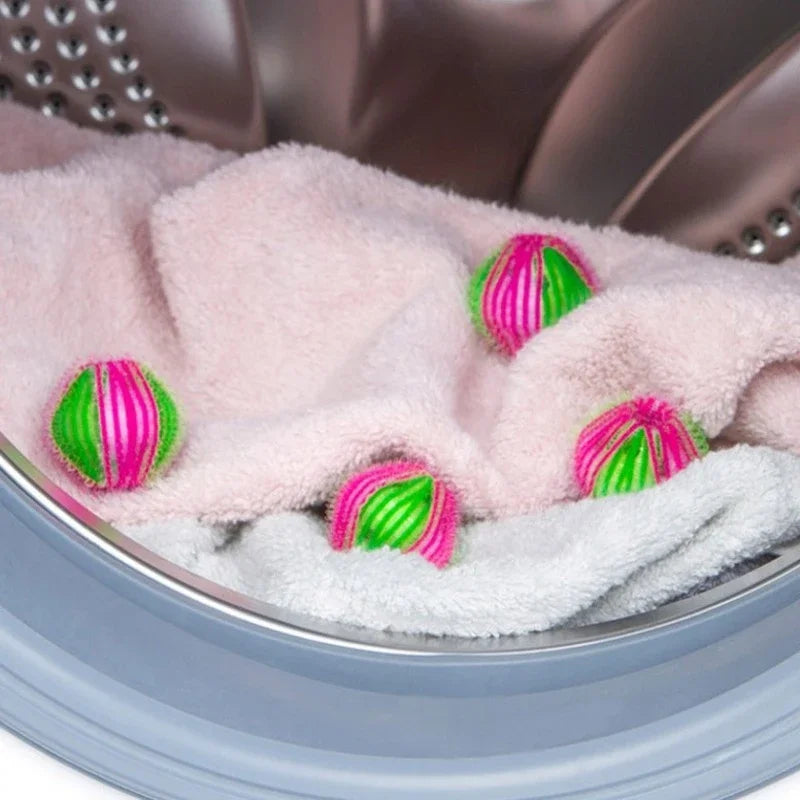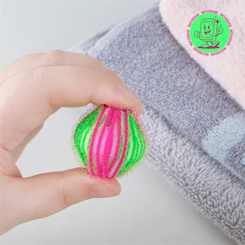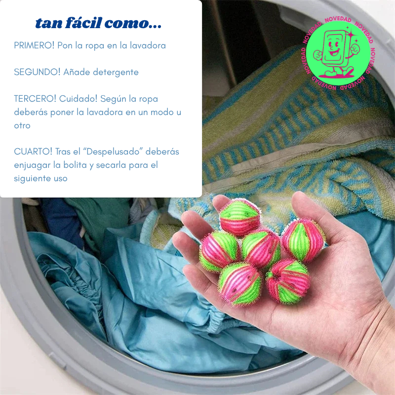 Cada bola Despelúsalo™ cuenta con una malla de alambres finos que genera fricción suave al girar en el tambor, adhiriendo pelos, pelusas y suciedad flotante sin dañar la ropa ni los tejidos. Reutilizable, duradera y compatible con cualquier lavadora.