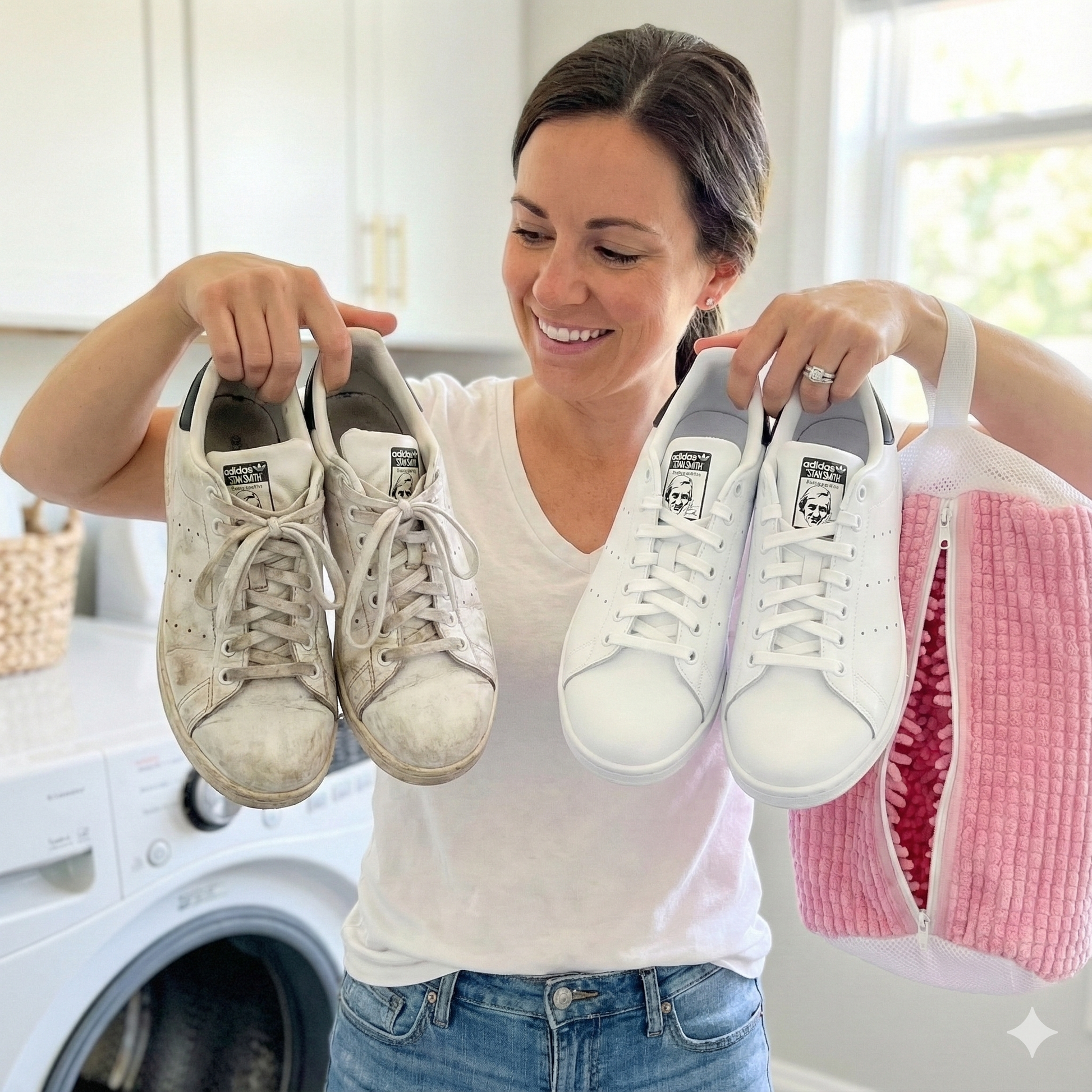 Nuestra bolsa de lavado pone tus tenis relucientes—sin esfuerzo, sin dañar nada.